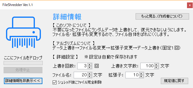 リンクはこちら→https://dl.dropboxusercontent.com/s/aep0ghkx8a00k00/fileshredder_Ver.1.1_ED.lzh